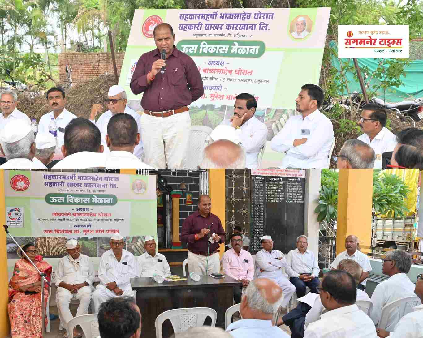 सहकार महर्षी भाऊसाहेब थोरात सहकारी साखर कारखान्याच्या वतीने निमगाव बुद्रुक, धांदरफळ, पेमगिरी येथे आयोजित ऊस विकास मेळाव्यात ते बोलत होते. यावेळी व्यासपीठावर ॲड. माधवराव कानवडे, व्हाईस चेअरमन पांडुरंग पाटील घुले, संचालक विनोद हासे, रावसाहेब दुबे, रोहिदास पवार, कार्यकारी संचालक जगन्नाथ घुगरकर, कृषी अधिकारी भाऊसाहेब खर्डे, बाळासाहेब सोनवणे आदींसह शेतकरी मोठ्या संख्येने उपस्थित होते.