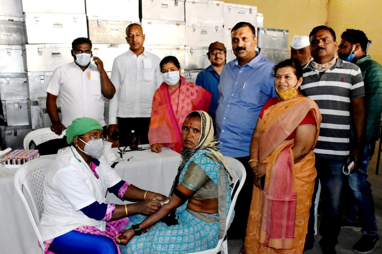 यशोधन कार्यालय येथे असंघटित कामगार काँग्रेस व महाराष्ट्र इमारत व इतर बांधकाम कल्याणकारी महामंडळ यांच्या संयुक्त विद्यमाने बाळासाहेब थोरात यांच्या वाढदिवसाचे औचित्य साधून १२६० कामगारांच्या आरोग्य तपासणी व त्यांना उपयोगी साहित्याचे वाटप करण्यात आले.