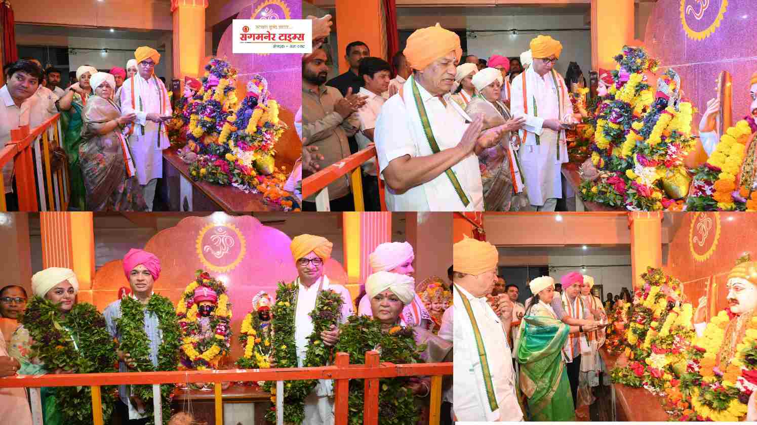 संगमनेर मधील चैतन्य नगर येथील विठ्ठल मंदिरात माजी आमदार थोरात व कांचनताई थोरात यांच्या हस्ते विठ्ठल व रुक्मिणीची आरती व पूजा करण्यात आली. याप्रसंगी डॉ. सुधीर तांबे, आमदार सत्यजित तांबे, डॉ. जयश्री थोरात, डॉ. मैथिली तांबे, शहराध्यक्ष विश्वास मुर्तडक, सोमेश्वर दिवटे, वैष्णव मुर्तडक, नाना देशमुख, सुभाष ताजने, श्याम अभंग, नितीन अभंग, डॉ निलेश सातपुते, बाबा मंडलिक, सौरभ कोल्हे, रामनाथ अभंग, गजेंद्र अभंग, मिलिंद औटी, प्रमिला अभंग, रवींद्र बडे, सुदर्शन पलोड, जीवन पांचारिया, आशिष कोठवळ, प्रशांत अभंग, दत्ता चव्हाण, सतीश बोरकर, राहुल चौधरी, आलोक बर्डे, विशाल ढोले, समीर भोर, मयूर राऊळ, आदींसह संगमनेर मधील विविध पदाधिकारी व कार्यकर्ते उपस्थित होते.
