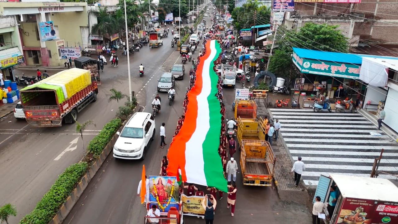 संगमनेरात ३००फूट तिरंगा पदयात्रा – विद्यार्थ्यांचा उत्स्फूर्त सहभाग