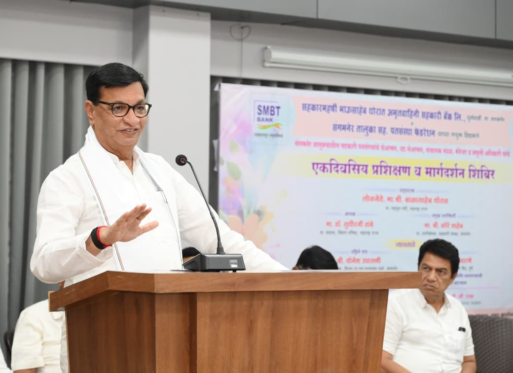 सहकार महर्षी भाऊसाहेब थोरात यांनी सहकार चळवळीसाठी दिलेल्या आदर्श तत्वांचे पालन संगमनेर मधील सहकार संस्थांमध्ये केले जात आहे यामुळे सर्व सहकारी संस्था ह्यात आदर्शवत आहेत. सहकार चळवळ ही जनतेच्या विकासाचे साधन असून ती जपली पाहिजे असे सांगताना तालुक्यातील बँका व पतसंस्था मिळून 9500 कोटींच्या ठेवी हे तालुक्याच्या समृद्धीचे प्रतीक असल्याचे प्रतिपादन माजी महसूल व कृषिमंत्री लोकनेते बाळासाहेब थोरात यांनी केले आहे.