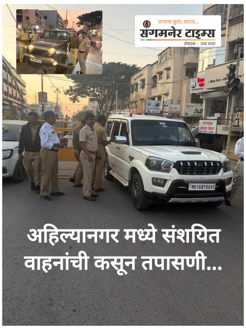 महानगरपालिका निवडणुकीच्या अनुषंगाने नाकाबंदी करून वाहतूक नियमभंग करणाऱ्या वाहनचालकांविरुध्द विशेष कारवाई अहिल्यानगर पोलिसांकडून करण्यात आली. बाबासाहेब बोरसे, पोलीस निरीक्षक, शहर वाहतुक नियंत्रण शाखा, अहिल्यानगर यांच्या मार्गदर्शनाखाली अधिनस्त पोलीस अधिकारी पोसई आण्णासाहेब परदेशी, ग्रेड पोउनि मन्सुर सय्यद, सफौ. रामराव शिरसाट, सफौ. गणेश आरणे, सफौ. संजय घोरपडे, मपोशि. जयश्री सुद्रीक यांनी आज शहरात प्रोफेसर चौक व भिस्तबाग चौक येथे अचानक नाकाबंदी करुन १३९ संशयास्पद वाहने कसून तपासली मात्र त्यात काही आढळून आले नाही.