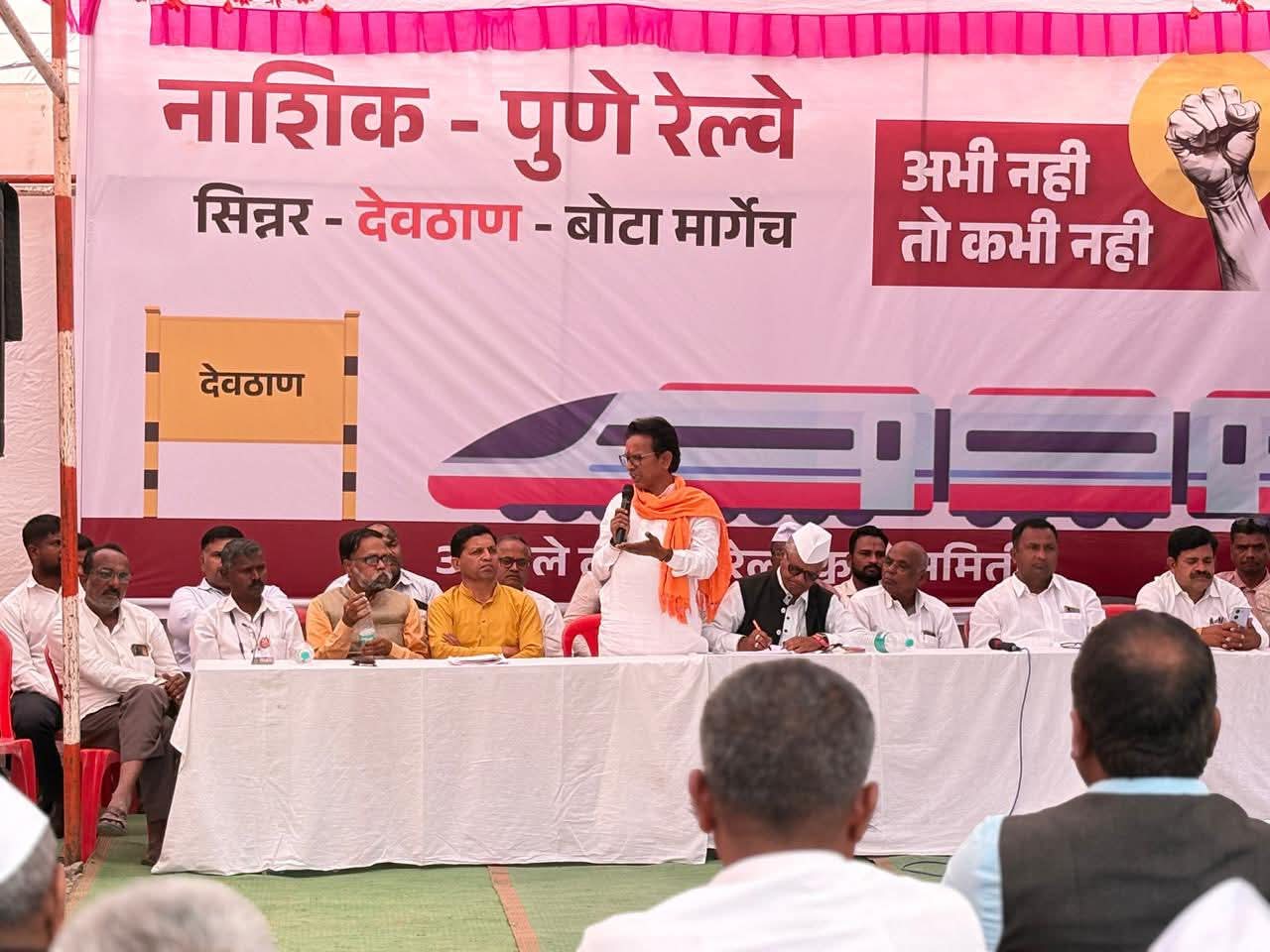 देवठाण येथे जिल्ह्याचे पालकमंत्री राधाकृष्ण विखे पाटील यांनी नुकतीच एक सभा घेऊन नासिक पुणे रेल्वे पूर्वीच्या मार्गानेच होईल व देवठाण येथे स्टेशन देऊनच रेल्वे पुढे जाईल असे आश्वासन दिले होते. एक फेब्रुवारी रोजी केंद्रीय अर्थसंकल्प मांडला जातो. अर्थसंकल्पात याबाबत बदललेला रूट पुनरस्थापित करण्याची घोषणा झाली नाही तर पालकमंत्र्यांच्या या घोषणेला अर्थ राहणार नाही. पालकमंत्र्यांचे आश्वासन खरे ठरावे यासाठी त्यांनी युद्ध पातळीवर राज्याचे मुख्यमंत्री देवेंद्र फडणवीस साहेब यांची भेट घ्यावी तसेच केंद्रीय रेल्वेमंत्री यांना भेटून एक फेब्रुवारी पूर्वी याबाबतचा निर्णय करावा. अर्थसंकल्प मांडताना तशी घोषणा दिल्ली मधून होईल यासाठी पूर्ण प्रयत्न करावेत. तसे झाले तरच पालकमंत्र्यांच्या आश्वासनाला अर्थ राहणार आहे. असे झाले नाही तर एक फेब्रुवारी नंतर वर्षभर पुन्हा या मागणीसाठी थांबावे लागेल व एक प्रकारे निवडणुकीसाठी दिलेले हे आश्वासन ठरेल. असे होऊ नये यासाठी पालकमंत्र्यांनी युद्ध पातळीवर काम करून दिलेले आश्वासन पाळावे अशी मागणी यावेळी करण्यात आली.