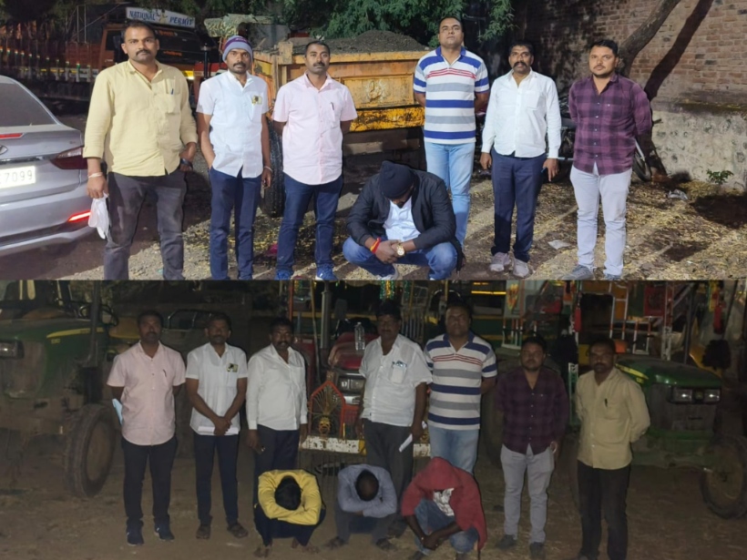 वरील आरोपी मिरजगाव पोलीस ठाण्याच्या हद्दीत नागापूर गावच्या शिवारात अवैधरित्या वाळू उपसा करताना आढळून आले. त्यावेळी एलसीबीच्या पथकाने छापा टाकून त्यांना पकडले आहे. सदर ठिकाणी दोन जेसीबीच्या साह्याने तीन ट्रॅक्टर ट्रॉलीमध्ये गौण खनिज भरत असतांना आढळून आले. पथक सदर ठिकाणी छापा टाकण्यासाठी जात असतांना काही आरोपी पळून गेले.