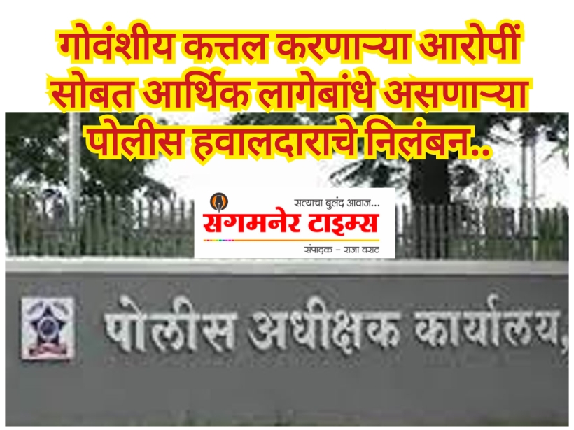 गोवंशीय कत्तल करणाऱ्या आरोपींशी आर्थिक लागेबांधे असणाऱ्या पोलीस हवालदाराचे निलंबन !
