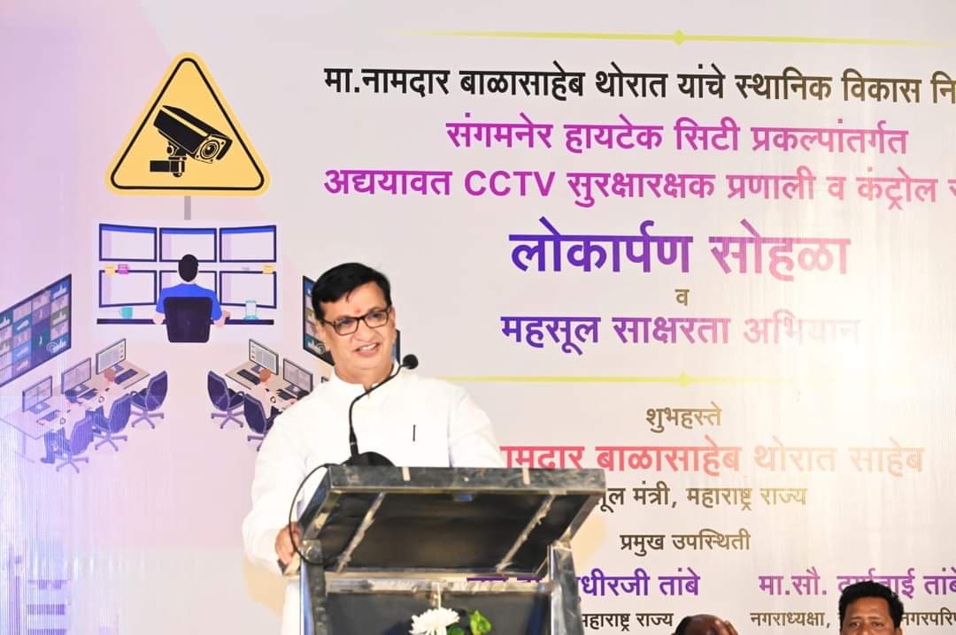 महसूल मंत्री बाळासाहेब थोरात यांच्या स्थानिक विकास निधी मधून संगमनेर शहराच्या विकासात आनखी एक मानाचा तुरा रोवला गेला असून आज शिवजयंतीनिमित्त संगमनेर शहराच्या सुरक्षेसाठी सीसीटीव्ही कॅमेरा प्रणाली महसूल मंत्र्यांच्या हस्ते लोकार्पण करण्यात आली तसाच या यंत्रणेचा शुभारंभ देखील करण्यात आला. यावेळी माजी नगराध्यक्षा दुर्गाताई तांबे, अहमदनगर जिल्हा पोलीस अधीक्षक मनोज पाटील यांची प्रमुख उपस्थिती होती.