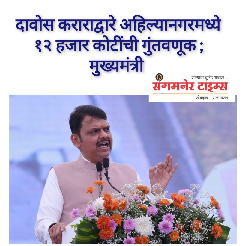 दावोस कराराद्वारे अहिल्यानगरमध्ये १२ हजार कोटींची गुंतवणूक ; १८ हजार रोजगार निर्मिती – मुख्यमंत्री देवेंद्र फडणवीस