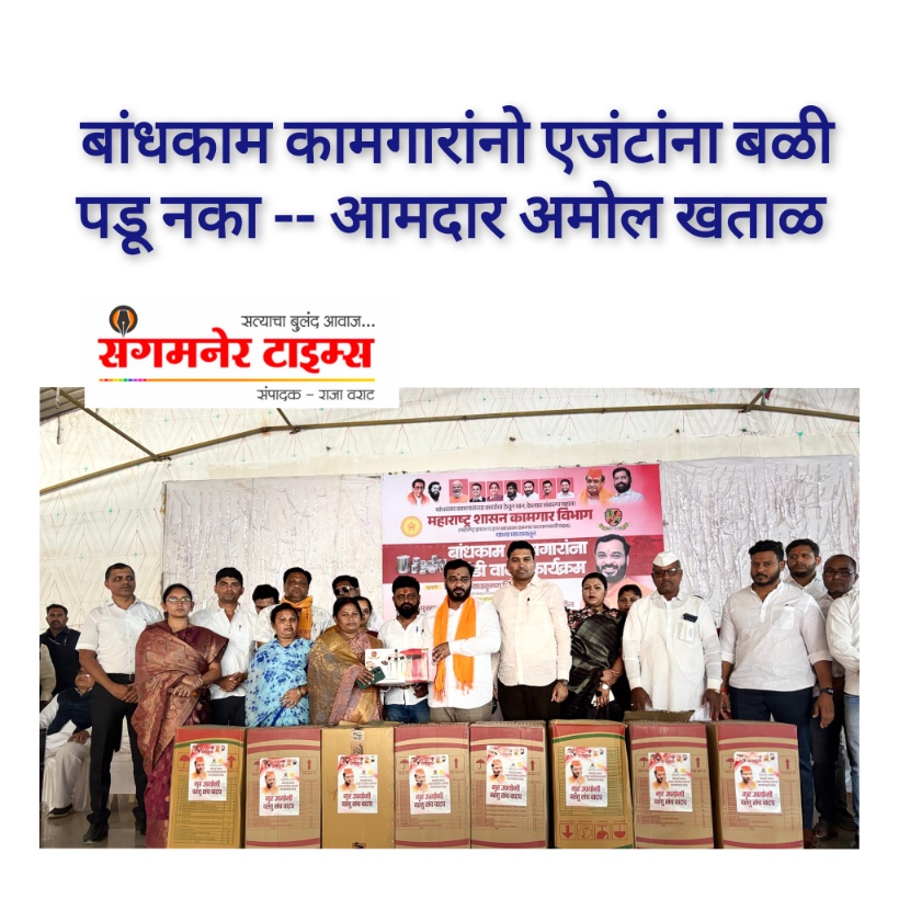 संगमनेर तालुक्यात महायुती सरकारच्या विविध कल्याणकारी योजनांचा बांधकाम कामगारांना लाभ देण्यात येत आहे. ही सर्व प्रक्रिया विनामूल्य राबविण्यात येत असून बांधकाम कामगारांनी कोणत्याही एजंटांना पैसे न देता थेट महायुती जनसंपर्क कार्यालयाशी संपर्क साधून अर्ज भरून लाभ घ्यावा, असे आवाहन आमदार अमोल खताळ पाटील यांनी केले.
