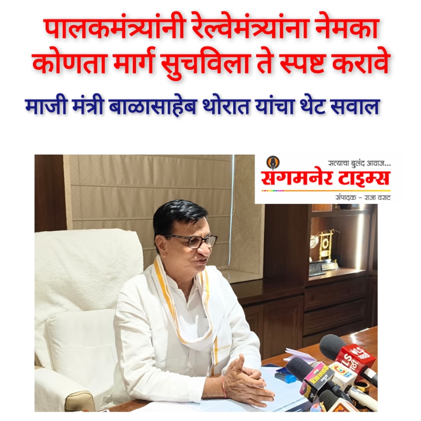 संगमनेर येथे माध्यमांशी बोलताना थोरात यांनी अनेक महत्त्वाचे प्रश्न उपस्थित केले. नाशिक–पुणे सेमी हायस्पीड रेल्वे प्रकल्पाला विशेषतः 2020 नंतर गती देण्यात आली. फेब्रुवारी 2020 मध्ये सेंट्रल रेल्वेकडून डीपीआर मंजूर झाला होता. त्यानुसार नाशिक – सिन्नर – संगमनेर – साकूर – आळेफाटा – नारायणगाव – मंचर – राजगुरुनगर – चाकण – आळंदी – हडपसर – पुणे असा मार्ग निश्चित करण्यात आला होता. या संदर्भात अनेक बैठका घेण्यात आल्या, मंत्रिमंडळाची मान्यता मिळाली आणि भूसंपादनाची प्रक्रियाही सुरू झाली होती. ही संपूर्ण प्रक्रिया माझ्या उपस्थितीत आणि साक्षीने झालेली आहे. सरकारने साडेतीनशे कोटी रुपये मोघम वाटले का ? जेव्हा रेल्वेचे मार्ग तयार होत होते, तेव्हा या सर्व अडचणींचा सारासार विचार झालेला होता. त्यातून व्यवस्थित मार्गही काढलेले होते. मग अचानक सरकार बदलल्यानंतर जीएमआरटी का आठवली? मार्गात बदल करण्याचे खरे कारण नेमके काय, याचा उलगडा होणे आवश्यक आहे. आज जी कारणे सांगितली जात आहेत, त्या कारणांचा विचार केल्यानंतरच सेंट्रल रेल्वेने राज्य सरकारच्या प्रस्तावाला मंजुरी दिलेली होती. त्यातूनच नाशिक – पुणे रेल्वे सरळ मार्गे होणार होती.
