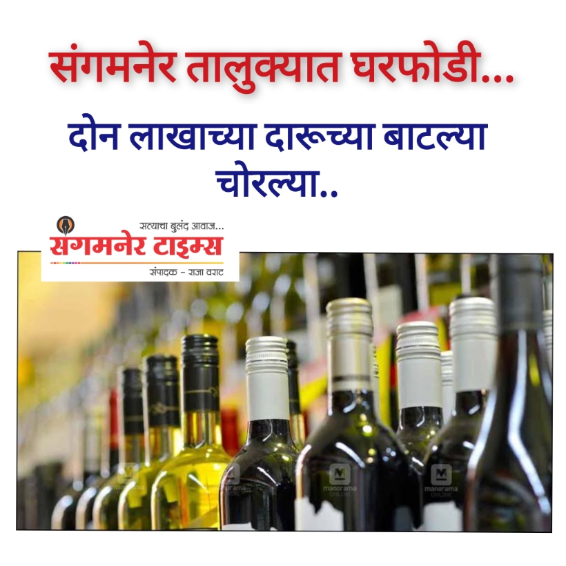 संगमनेर तालुक्यात ग्रामीण भागात घरफोडी करून चोरट्यांनी एका बियर बार परमिट रूम मधून इंग्रजी दारूच्या बाटल्या लंपास केल्या आहेत. या घरफोडीमध्ये एकूण 2 लाख 3 हजार 550 रुपयांचा माल चोरीस गेला असून यामध्ये मॅकडॉल व्हिस्की व रॉयल स्टॅग कंपनीच्या दारूच्या बाटल्या चोरण्यात आल्या आहेत.