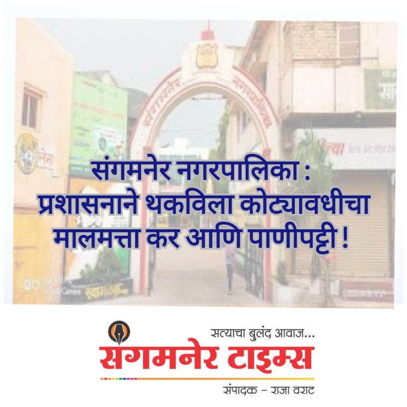 संगमनेर नगरपालिका : शासनाने थकविला कोट्यावधीचा मालमत्ता कर आणि पाणीपट्टी