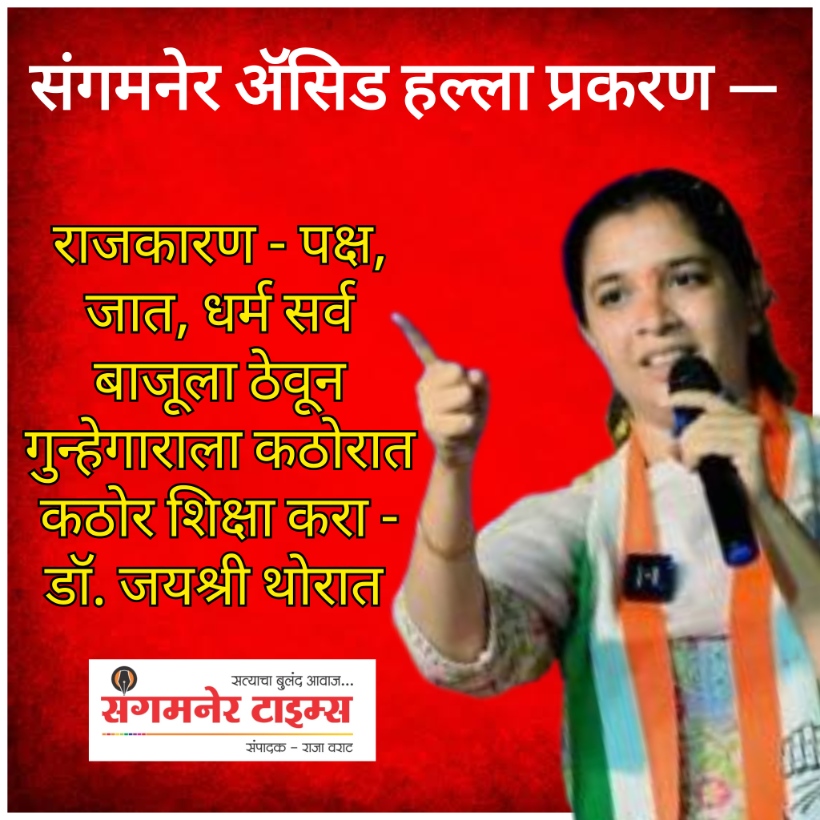 काल संगमनेर तालुक्यातील पठार भागात एका गावामध्ये एका मुलीने लग्नाला नकार दिला म्हणून तिच्यावर चाकू हल्ला होतो, आज तेरा वर्षीय चिमुकलीवर ॲसिड हल्ला होतो. काय दोष आहे या मुलींचा ? समाजाने जागृत झाले पाहिजे. गुन्हेगारांना कठोर शिक्षा झाली पाहिजे अशी आग्रही मागणी त्यांनी केली.