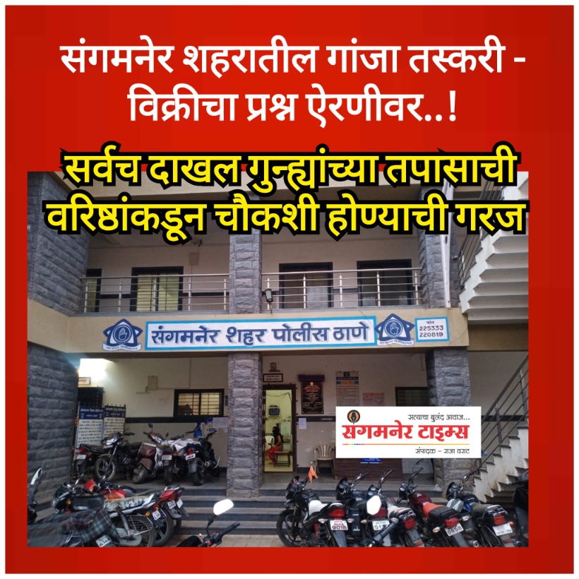 संगमनेर शहरात गेल्या एक ते दीड वर्षापासून अमली पदार्थ विक्री आणि तस्करीचे प्रमाण सातत्याने वाढत आहे. कधी नव्हे ते शहरात ड्रग्स विक्रीने धुमाकूळ घातलेला आहे. असे असताना संपूर्ण अहिल्यानगर जिल्ह्यात गांजा तस्करी, गांजा विक्री याबाबत संगमनेर शहर कुप्रसिद्ध झाले आहे. गांजा संदर्भाने संगमनेर शहर पोलीस ठाण्यात आणि तालुका पोलीस ठाण्याच्या हद्दीत बरेच गुन्हे दाखल झाले आहेत. या गुन्ह्यांमधला मुद्देमाल हा कोटी रुपयांच्या रकमेचा आहे. मात्र या सर्व दाखल गुन्ह्यांच्या तपासाबाबत शाशंता व्यक्त केली जात असून वरिष्ठांनी या तपासाबाबत गांभीर्याने दखल घेऊन तपासाचीच पूर्ण चौकशी करणे गरजेचे असल्याचे मत नागरिक व्यक्त करतात. कारण गुन्हे दाखल होत असले तरीही शहरातील गांजा तस्करी विक्री थांबलेली नाही. आणि पुन्हा तेच तेच आरोपी जामिनावर सुटून तेच गुन्हे करत आहेत हा संपूर्ण प्रकार संशयस्पद आहे.