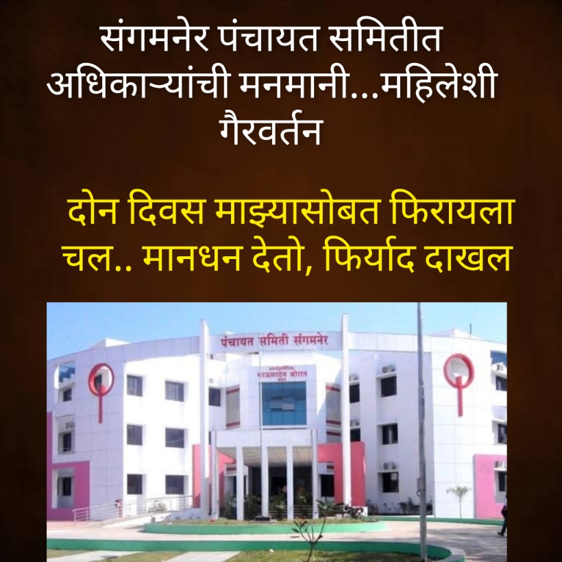 संगमनेर पंचायत समितीत अधिकाऱ्यांची मनमानी…महिलेशी गैरवर्तन