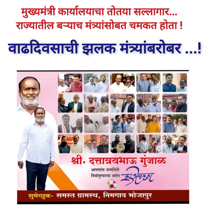 आरोपी दत्तात्रय गुंजाळ याच्या वाढदिवसानिमित्त शुभेच्छा देणारे फलक लावण्यात येत होते. या फलकावर चक्क आजी-माजी मुख्यमंत्र्यांसह अनेक मंत्र्यांची गुंजाळ याच्यासोबत असलेली छायाचित्रे देखील लावण्यात आलेली आहेत. यामध्ये आमदार मंत्र्यांचा समावेश आहे. गावापासून सुरू झालेला हा खेळ विधिमंडळात पोहोचला आणि विधिमंडळातून सुरू झालेला खोटेपणाचा खेळ छायाचित्रांसह गावात पसरून येथे देखील फसवणूक केली असण्याची दाट शक्यता आहे.