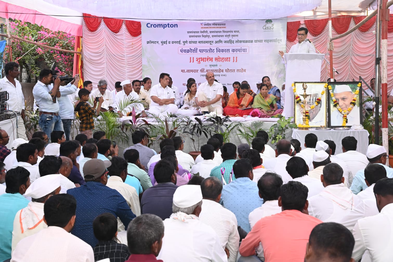 थोरात म्हणाले की, जयहिंद लोकचळवळीच्या माध्यमातून आमदार डॉ. तांबे यांच्या पुढाकारातून संगमनेर तालुक्यामध्ये सदृढ ग्राम हा प्रकल्प राबवला जात आहे. यामध्ये संगमनेर तालुक्यातील १५ गावांची निवड झाली आहे. वनराई व क्रॉम्प्टन ग्रुप च्या सहकार्याने पाच कोटींची कामे होणार असून पहिल्या टप्प्यात ७० टक्के निधी विविध गावांवर खर्च केला जाणार आहे. आदर्शगाव योजनेतून संगमनेर तालुक्यात अनेक कामे उभी राहिली असून पाणलोटाच्या माध्यमातून जलसंधारणाचे आणखी काम उभे राहणार आहे. स्व. मोहन धारिया यांच्या नेतृत्वाखाली वणराई संस्थेने या क्षेत्रात राज्यभरात मोठे काम उभे केले आहे. संगमनेर तालुक्यातही या विविध गावांमध्ये त्यांच्याकडून होणाऱ्या कामांमुळे पाणलोट कामांना अधिक गती मिळेल असा विश्वास त्यांनी व्यक्त केला.