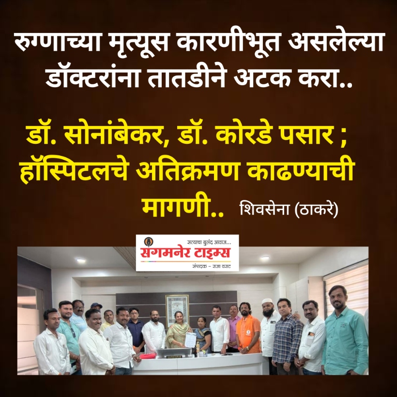 शिवसेना उद्धव बाळासाहेब ठाकरे यांच्याकडून देण्यात आलेल्या निवेदनात म्हटले आहे की, सगमनेर शहर व तालुका शिवसेना (ठाकरे) पक्षाच्या वतीने आपणास जाहीर निवेदनाद्वारे सुचित करण्यात येते कि, मागील वर्षी मार्च २०२५ मध्ये संगमनेर येथील सोनांबेकर हॉस्पिटल येथे दत्तात्रय दळवी हे रुग्ण हृदयरोगाच्या उपचारासाठी दाखल झाले होते. सदर रुग्णावर अँजीओप्लास्टी करण्यासाठी शस्त्रक्रिया करण्यात आली. मात्र, शस्त्रक्रिये दरम्यान व त्यानंतर संबंधित डॉक्टरांकडून गंभीर हलगर्जीपणा झाल्याचे दिसून येते.