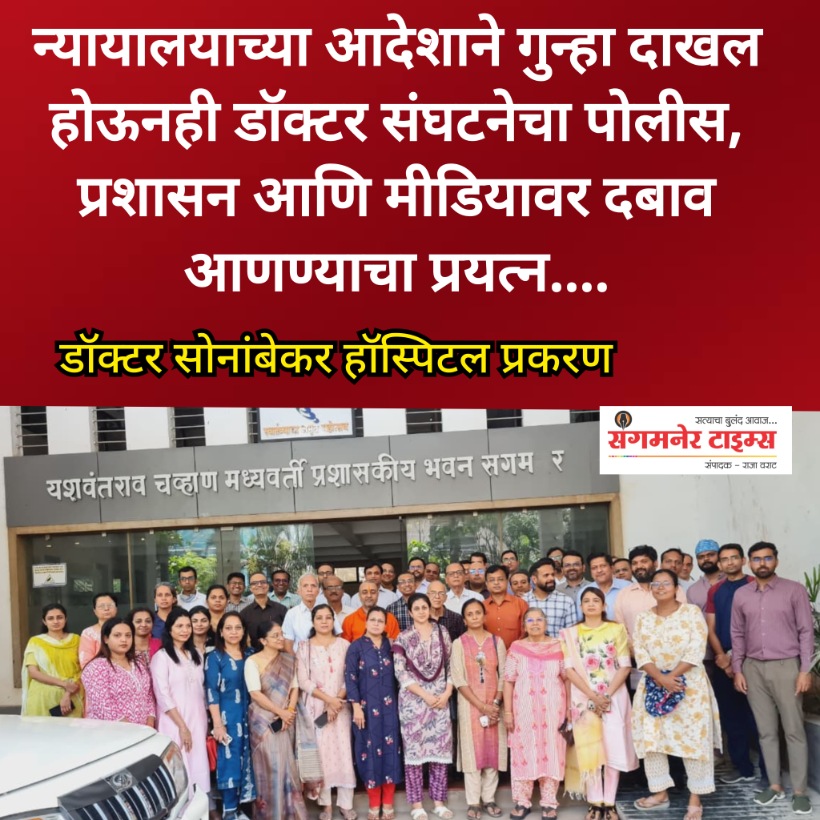 संगमनेरच नव्हे तर इतर तालुक्यातीलही डॉक्टरांची संघटना ॲक्टिव्ह करून अशा प्रकारचे पोलीस प्रशासनांना निवेदन देणे म्हणजे संघटितपणे दबाव आणण्याचा हा प्रकारच असल्याचे दिसून येत आहे. न्यायालयाने आदेश देऊन गुन्हा दाखल झाला असला तरी डॉक्टर संघटनेला सदर बाबतीत आरोपी डॉक्टरची बदनामी होत असल्याचे वाटते. खोटी माहिती प्रसारित केली जात असल्याचे त्यांचे म्हणणे आहे. हा एक प्रकारे न्यायालयाचाही अवमान असल्याचेच प्रथमदर्शनी दिसते. एकंदरीत पाहता संघटितपणे पोलीस प्रशासन आणि मीडियावर दबाव आणण्याचा प्रकार सुरू असल्याचे चित्र आहे.