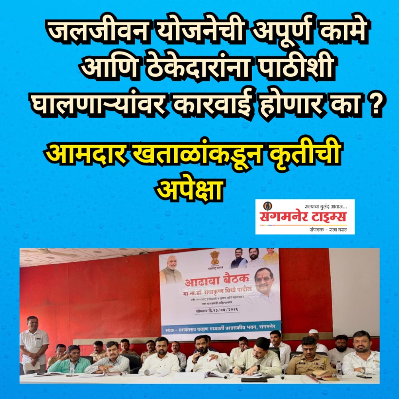 संगमनेरचे आमदार अमोल खताळ यांनी नुकतीच आढावा बैठक घेतली. या बैठकीत पाण्याचा प्रश्न ऐरणीवर होता. संगमनेर तालुक्यात दुष्काळ सदृश्य परिस्थिती निर्माण झाली आहे. त्यामुळे परिस्थिती गांभीर्याने घेण्याची गरज बैठकीत व्यक्त करण्यात आली. जलजीवन मिशनची कामे अपूर्ण आहेत. ठेकेदारांना पाठीशी घालण्यासाठी अधिकारी कागदोपत्री कामे पूर्ण झालेले दाखवत आहेत असा स्पष्ट आरोप आमदार खताळ यांनी केला आहे. मात्र अशा ठेकेदारांवर आणि अधिकाऱ्यांवर कारवाई केली जाईल की नाही हा महत्त्वाचा मुद्दा ठरला आहे. आमदार अमोल कटाळांकडून कृतीची अपेक्षा नागरिकांकडून व्यक्त होत आहे.