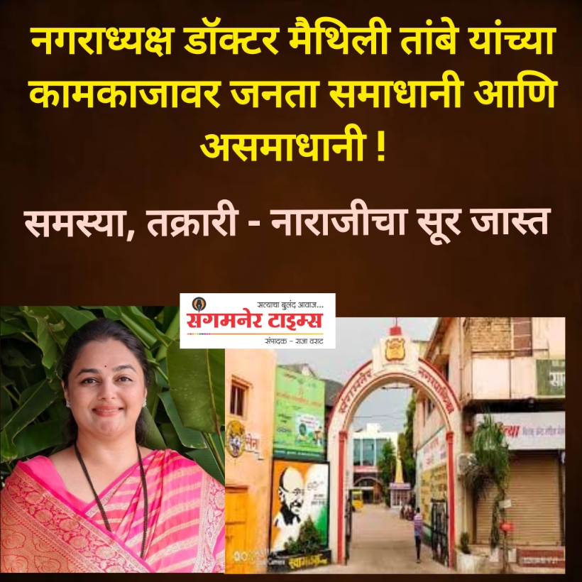 सेवा समिती संगमनेरच्या नावाखाली आणि एका पक्षाकडून चिन्ह घेऊन आमदार सत्यजित तांबे यांच्या नेतृत्वाखाली संगमनेर नगरपालिकेची एकहाती सत्ता मिळविल्यानंतर शहराच्या विकासासंदर्भात आणि नागरी समस्यांच्या संदर्भात वेगवेगळ्या प्रकारच्या चर्चा सुरू आहेत. सोशल मीडियावर वेगवेगळ्या प्रतिक्रिया व्यक्त होत असून यामध्ये नगराध्यक्ष डॉक्टर मैथिली तांबे यांच्या कामकाजाबाबत समाधान व्यक्त होत आहे आणि असमाधानही व्यक्त करण्यात येत आहे. विविध मूलभूत नागरी समस्या, तक्रारी आणि नाराजीचा सूर याचे प्रमाण जास्त आहे.
