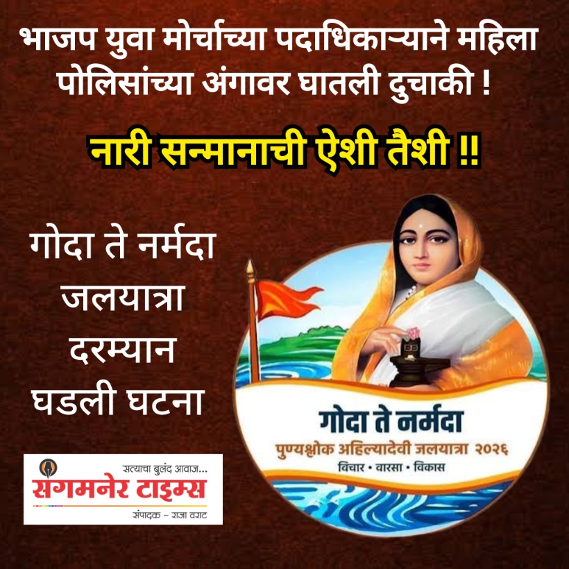 भाजपमध्ये बहुचर्चित असलेली गोदा ते नर्मदा जलयात्रा संगमनेर येथे येऊन प्रवरा नदी परिसरात जाजू इंग्लिश मीडियम स्कूल या ठिकाणी थांबली होती. प्रवरा नदी काठावर कार्यक्रमाचे आयोजन करण्यात आले होते. त्यासाठी पोलीस बंदोबस्त ठेवण्यात आला होता. या बंदोबस्ताच्या वेळी फक्त व्हीआयपी गाड्यांचा ताफा (कन्वाय) आणि यात्रेतील महत्त्वाच्या गाड्या यांनाच कार्यक्रम ठिकाणी प्रवेश देण्यात आलेला होता. मात्र अशावेळी संगमनेर येथील युवा मोर्चाचे अध्यक्ष रोहित राजेश चौधरी यांच्यासह वरद बागुल आणि आणखी एक जण मोटार सायकलवर ट्रिपल सीट येऊन थेट कार्यक्रमाच्या ठिकाणी जाऊ लागल्याने त्यास थांबवणाऱ्या महिला पोलीस कर्मचाऱ्यांच्या अंगावर थेट गाडी घालण्याची खळबळ जनक घटना समोर आली आहे.