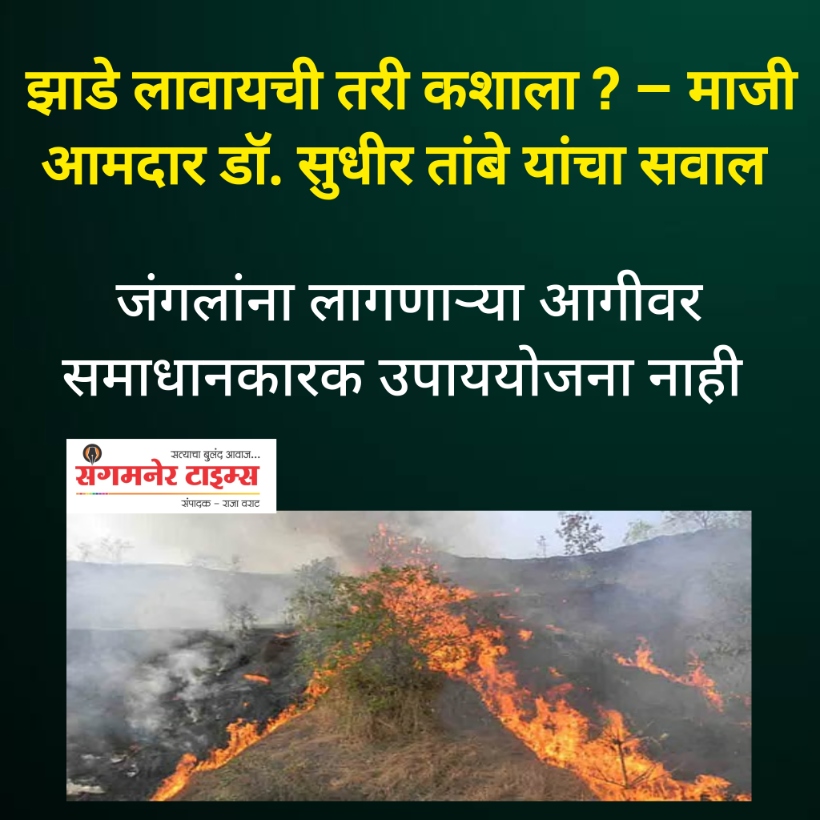 संगमनेर तालुक्यात सध्या मोठ्या प्रमाणावर जंगलांना लागणाऱ्या आगीमुळे पर्यावरणाला गंभीर फटका बसत असून या घटनांबाबत प्रशासनाकडून समाधानकारक उपाययोजना होत नसल्याचा आरोप माजी आमदार डॉ. सुधीर तांबे यांनी केला. मालदाड येथे लागलेल्या आगीच्या पार्श्वभूमीवर त्यांनी ही प्रतिक्रिया दिली.