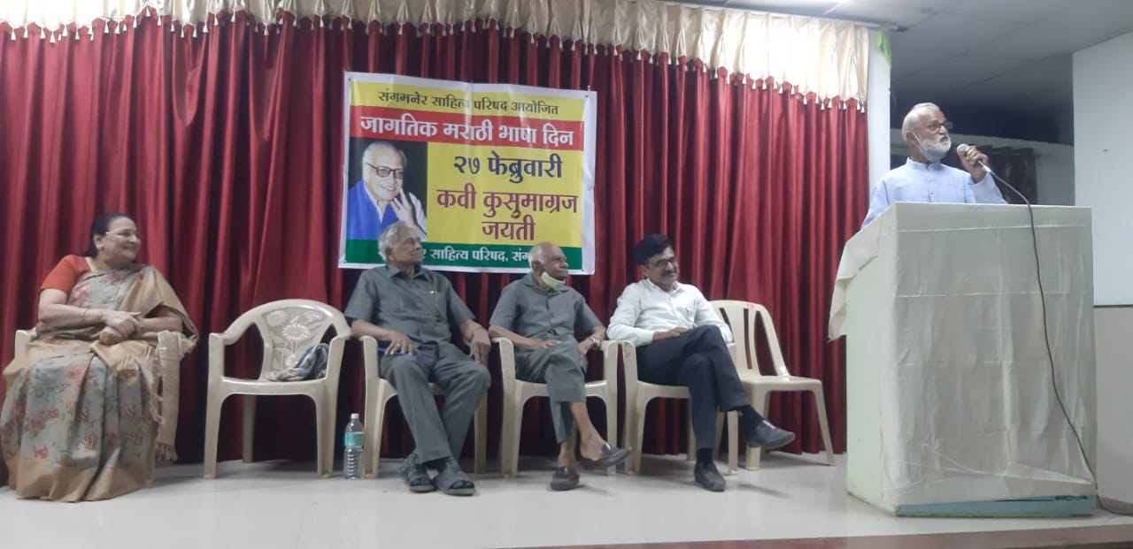 मराठी भाषा गौरव दिन आणि कुसुमाग्रज यांच्या जयंतीचे औचित्य साधून संगमनेर साहित्य परिषदेने कालिका मंदिर सभागृहात कार्यक्रम आयोजित केला होता. त्या वेळी ते बोलत होते.