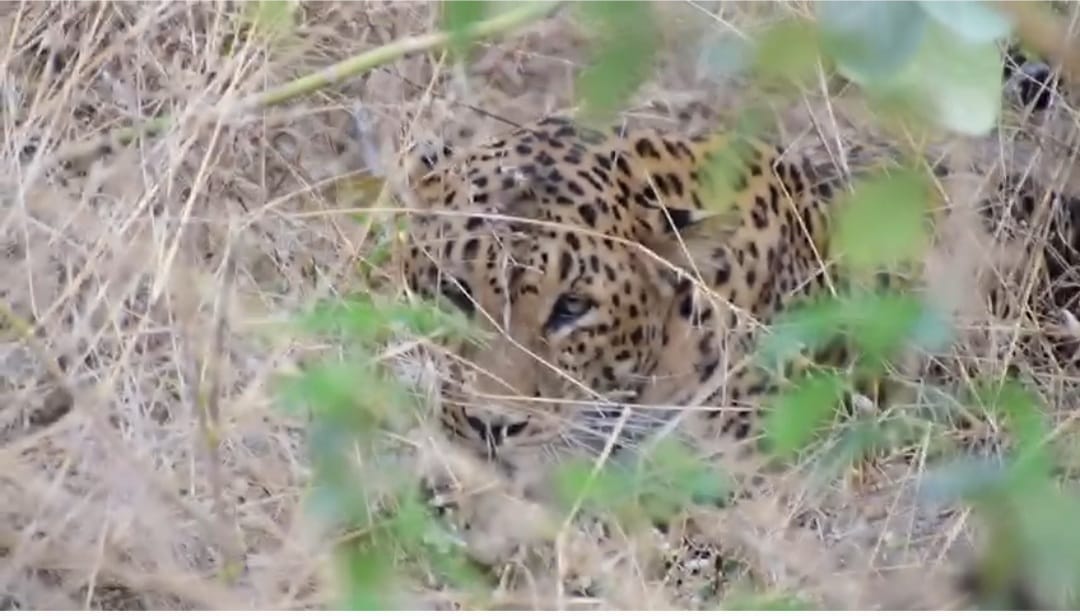 चपळ हालचालीने आपली शिकार पकडण्यात तरबेज असलेला बिबट्या एखाद्या शेतात सुस्तावून निवांतपणे झाडी झुडुपां मध्ये बसलेल्या पाहिल्यावर आपल्याला काय वाटेल..