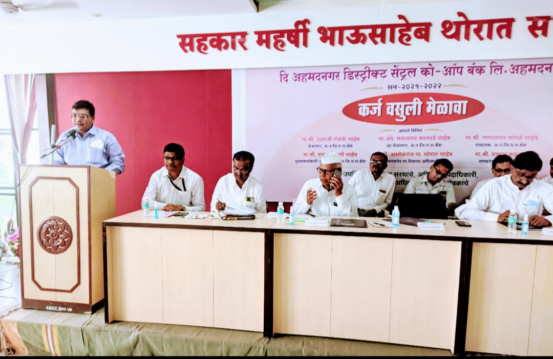 सहकार महर्षी भाऊसाहेब थोरात सहकार सभागृहात अहमदनगर जिल्हा मध्यवर्ती सहकारी बँकेचा सन २०२१- २२ कर्ज वसुली मेळावा पार पडला. त्यावेळी ते बोलत होते. बँकेचे व्हा.चेअरमन अॅड. माधवराव कानवडे, संचालक गणपतराव सांगळे , माजी चेअरमन बाजीराव खेमनर , बँकेचे मुख्य कार्यकारी अधिकारी वर्पे, जनरल मॅनेजर देशमुख आदि मान्यवर उपस्थित होते.