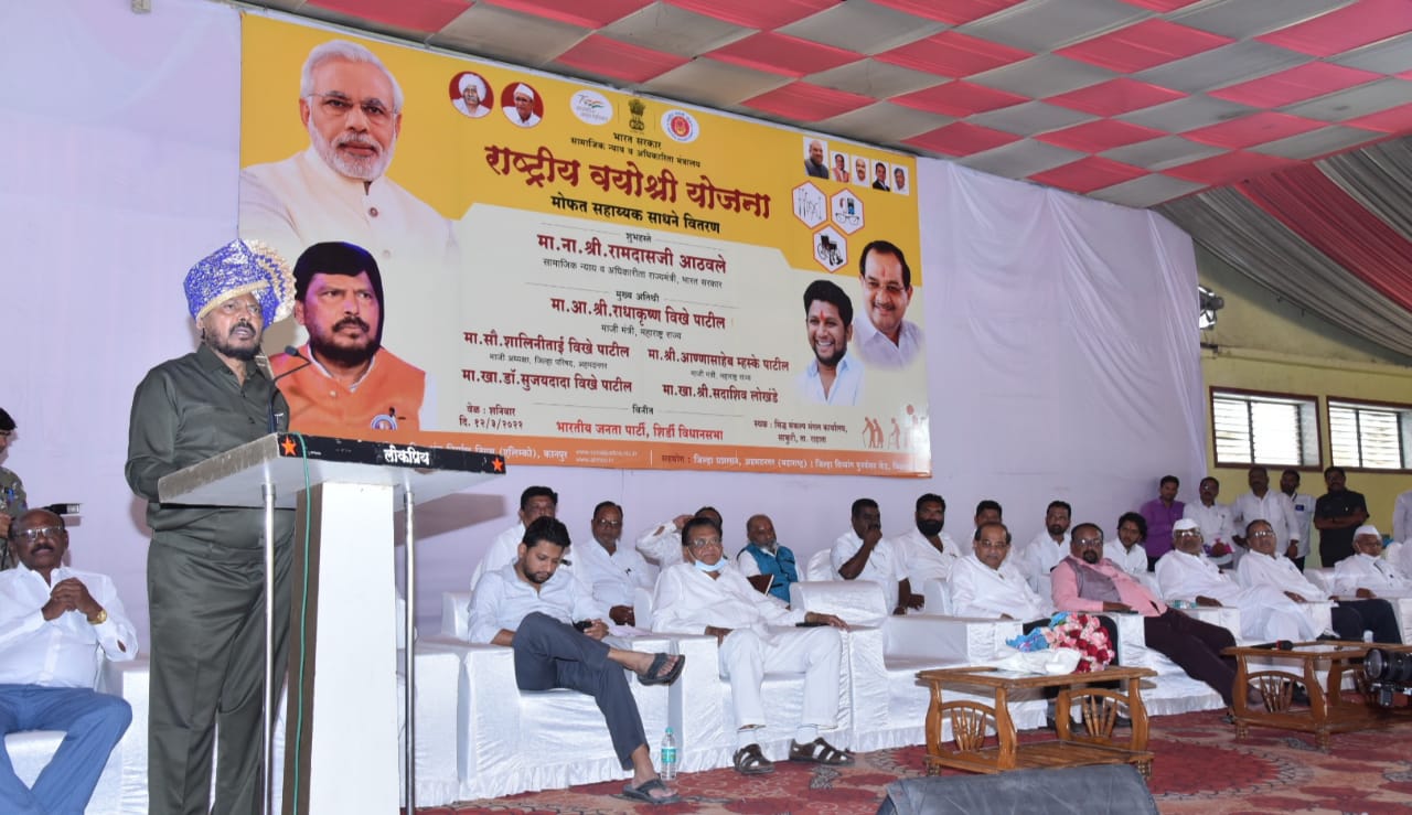 राष्ट्रीय वयोश्री योजनेची प्रभावी अंमलबजावणी केल्याबद्दल खासदार डॉ.सुजय विखे पाटील यांचे अभिनंदन करुन, मंत्री आठवले म्हणाले की, सामाजिक न्याय मंत्रालयाच्या माध्यमातून २०११ च्या जनगणने नुसार देशात २ कोटी ६७ लाख दिव्यांग लोक आहेत. वयोश्री लोकांची संख्या तुलनेने मोठे आहे. या योजनेतील लोकांना साहित्य मिळत आहे. यंदाच्या अर्थसंकल्पात १ लाख ४२ हजार कोटी रुपयांची तरतुद या विभागासाठी करण्यात आली असल्याची माहीती त्यांनी दिली.