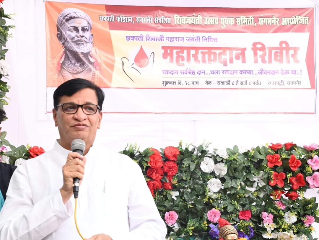 या रक्तदान शिबिरासाठी अर्पण ब्लड बैंक आणि आधार ब्लड बँकेच्यावतीने एकाच वेळी संगमनेर शहरात रंगारगल्ली, इंदिरानगर, मार्कंडेय मंदिर, दत्त मंदिर, बस स्थानक, मेडीकव्हर हॉस्पिटलसह तालुक्यामध्ये चंदनापूरी, करूले, तळेगाव, आश्वी, डिग्रस, पिंपळगाव कोंझीरा, घुलेवाडी, कासारादुमाला या ठिकाणी आयोजित करण्यात आलेल्या शिबीरात रक्तदात्यांनी रक्तदान केले. रखरखत्या उन्हातदेखील भरघोस प्रतिसाद देत नागरिकांनी आपली सामाजिक बांधीलकी जोपासत रक्तदान केले. याशिवाय २१ मार्चला होणाऱ्या शिवजयंती उत्सवावेळी सकाळी ८ वाजता शहर व उपनगरातुन मोटारसायकल रॅली, दुपारी १ वाजता शिवनेरीहुन येणाऱ्या शिवज्योतीचे स्वागत तसेच सायंकाळी ६ वाजता निघणाऱ्या शिवसेनेच्या पारंपरिक भव्य मिरवणुकीत सहभागी होण्याचे आवाहन उत्सव समितीच्यावतीने करण्यात आले आहे.