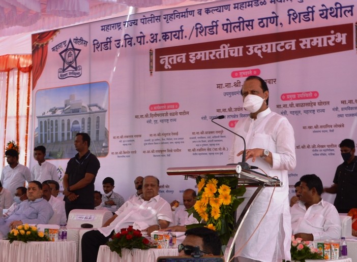 शिर्डी उपविभागीय पोलीस अधिकारी कार्यालय, शिर्डी पोलीस ठाणे व शिर्डी येथील पोलीस अमंलदारांच्या ११२ निवासस्थानांच्या नूतन इमारतींचे उद्घाटन उपमुख्यमंत्री तथा वित्त मंत्री अजित पवार यांच्या हस्ते झाले. त्यावेळी ते बोलत होते.