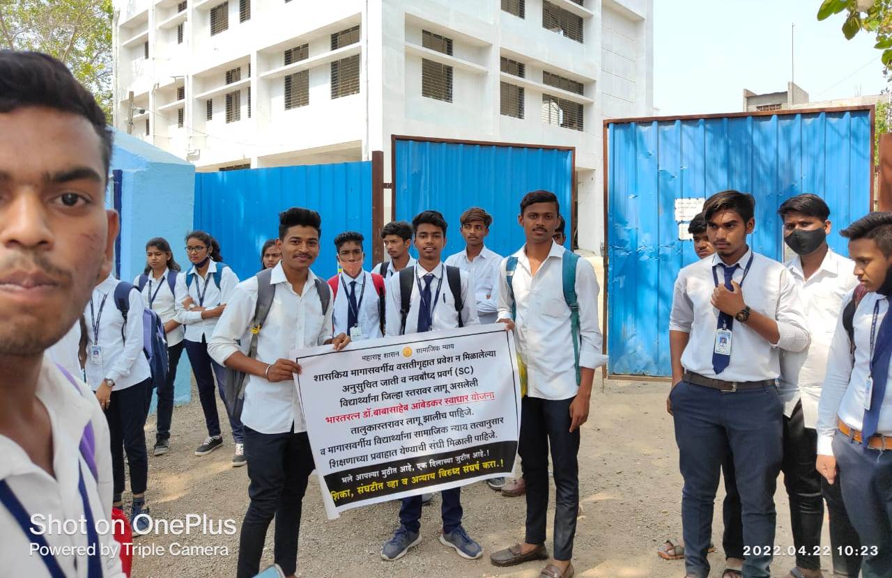 तालुकास्तरावर डॉ. बाबासाहेब आंबेडकर स्वाधार योजना लागू करून मागासवर्गीय विद्यार्थ्यांना न्याय द्यावा यासाठी विद्यार्थ्यांनि प्रांत कार्यालयावर मोर्चा काढून आंदोलन केले.