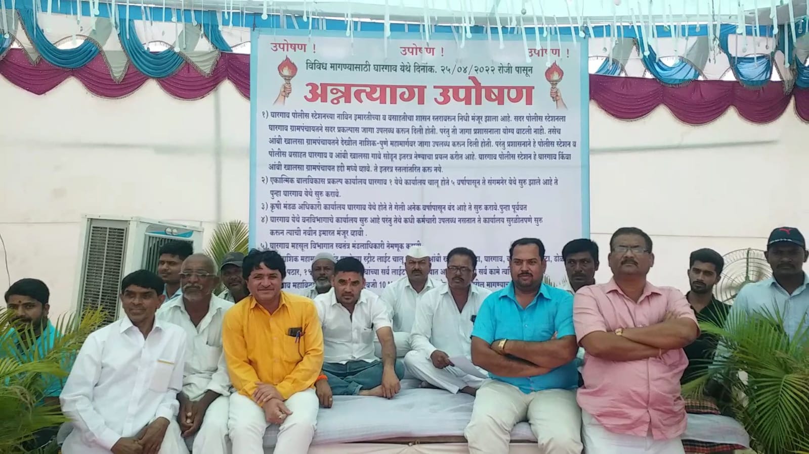 घारगाव येथे नवीन पोलीस ठाण्याची इमारत मंजूर झाली आहे. मात्र जागेअभावी हे पोलीस ठाणे डोळासणे येथे हलविण्यात आले असल्याचे त्यांचे म्हणणे आहे. त्यामुळे ग्रामस्थ चांगलेच आक्रमक झाले आहेत. हे पोलीस ठाणे घारगावलाच झाले पाहिजे. त्याचबरोबर घारगाव येथे एकात्मिक बालविकास प्रकल्प सुरू करावे, कृषी मंडळधिकारी कार्यालय, वन विभाग कार्यालय आदी मागण्यांसाठी तालुकाप्रमुख जनार्दन आहेर यांनी सोमवारी सकाळपासून अन्नत्याग उपोषण सुरू केले आहे.