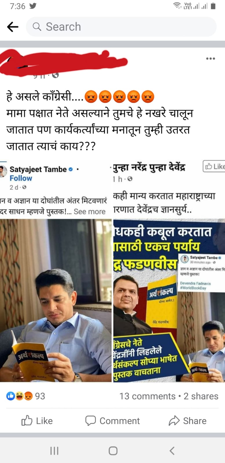 सोशल मीडियातील फेसबुकवर आलेल्या एका पोस्टवर तांबे यांना ट्रोल करणाऱ्या खालील प्रतिक्रिया आल्या आहेत.