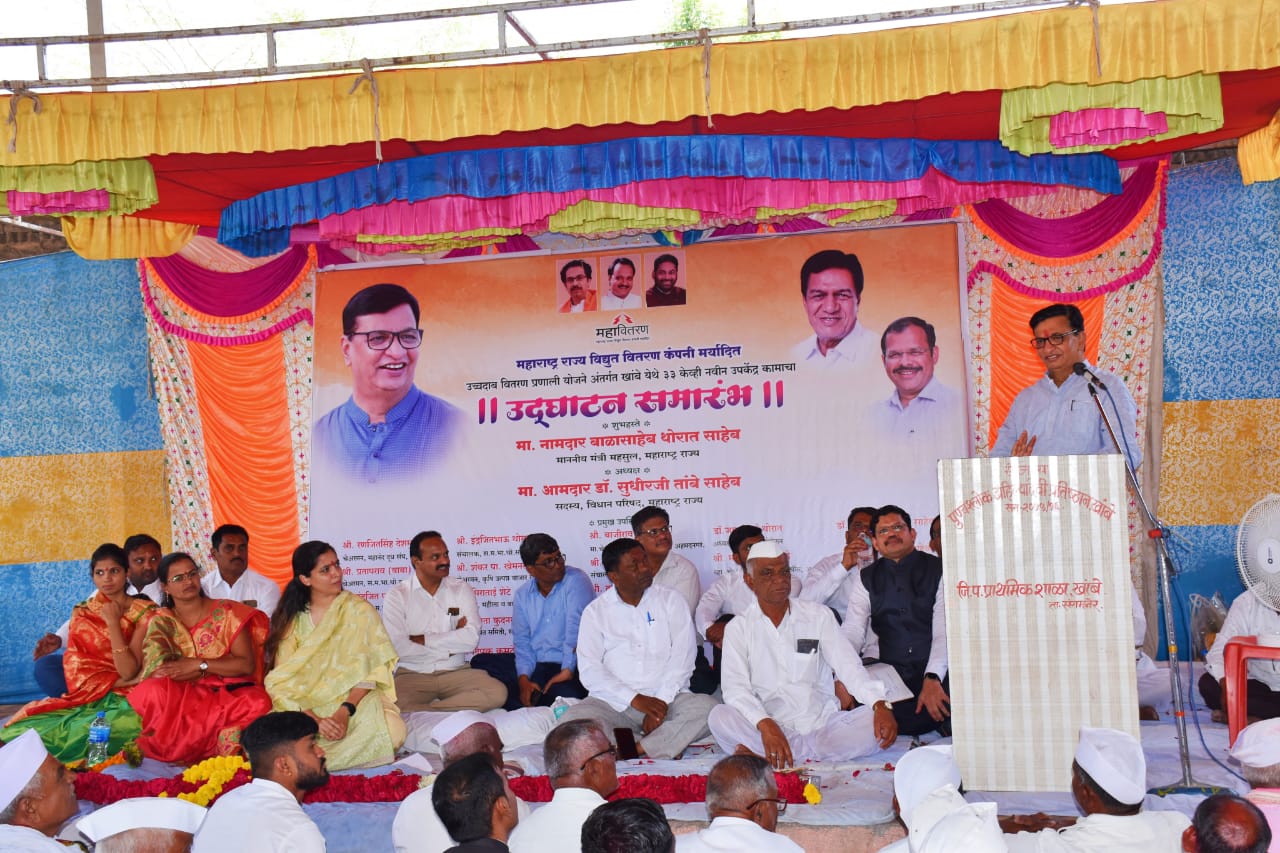 खांबे येथे विद्युत महावितरणच्या वतीने उभारलेल्या ३३ केव्ही सब स्टेशन व विविध विकासकामांच्या उद्घाटन प्रसंगी कार्यक्रमात ते बोलत होते. यावेळी अध्यक्षस्थानी शंकर खेमनर होते तर व्यासपीठावर डॉ. जयश्री थोरात, सभापती मिरा शेटे, उपसभापती नवनाथ अरगडे, पंचायत समिती सदस्य किरण मिंडे, तुकाराम दातीर, सरपंच रवींद्र दातीर, राजेंद्र चकोर, इंद्रजीत खेमनर, जयराम ढेरंगे, सचिन खेमनर, महावितरणचे कार्यकारी अभियंता अनिल थोरात, अधीक्षक अभियंता सुनील काकडे, अधीक्षक अभियंता इन्फ्रास्ट्रक्चर संजय खंदारे, दीपक कुमठेकर, प्रांतअधिकारी डॉ. शशिकांत मंगरुळे, तहसीलदार अमोल निकम, सार्वजनिक बांधकाम विभागाचे आर .आर .पाटील, गटविकास अधिकारी अनिल नागणे, माधव दातीर, यशोधन कार्यालयाचे विजय हिंगे यांसह पठार भागातील विविध कार्यकर्ते पदाधिकारी उपस्थित होते.