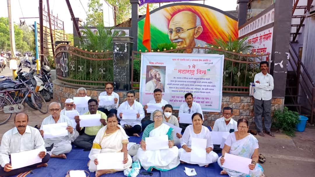 १ मे महाराष्ट्र दिनाच्या निमित्ताने संगमनेरमधे पांढऱ्या रंगाचे कपडे परिधान करून आणि हातात पांढरे कागद घेऊन कार्यकर्त्यांनी आपली अस्वस्थता छत्रपती शिवाजी महाराजांना अभिवादन करून प्रकट केली.