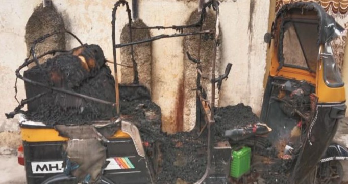 आज पहाटेच्या सुमारास संगमनेर शहरातील घोडेकर मळ्याच्या परिसरासह जेधे कॉलनीत घरा समोर उभ्या असलेल्या एका रिक्षासह दोन मोटारसायकल जाळून टाकण्याची घटना घडली आहे. यात एक दुचाकी आगीत पूर्ण जळाली असून रिक्षासह दुसऱ्या मोटरसायकलचे मोठे नुकसान झाले आहे. संगमनेर शहर पोलिसांनी या संदर्भात अज्ञात इसमा विरुद्ध गुन्हा दाखल केला आहे.