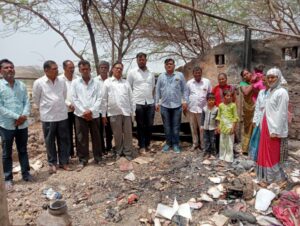 संगमनेर तालुक्यातील कोंची येथील भिल्ल आदिवासी कुटुंब सिंधुबाई बाळासाहेब माळी यांच्या घराचे जळीत झाल्याने त्यांचे संसारउपयोगी साहित्य, धान्य, कपडे आगीत जळून खाक झाले. त्यांचा संसार उघड्यावर पडला. ही बातमी कळताच महसूल मंत्री बाळासाहेब थोरात यांच्या यशोधन कार्यालयाच्या वतीने सिंधुबाई माळी यांच्या कुटूबियांची आदिवासी सेवक प्रा. बाबा खरात यांनी भेट घेतली. यावेळी समवेत जनसेवक कैलास मोकळ, सरपंच अमृता जयराम भास्कर, उपसरपंच सोमनाथ जोंधळेे, ग्रामसेवक रमेश भालेराव उपस्थित होते.
