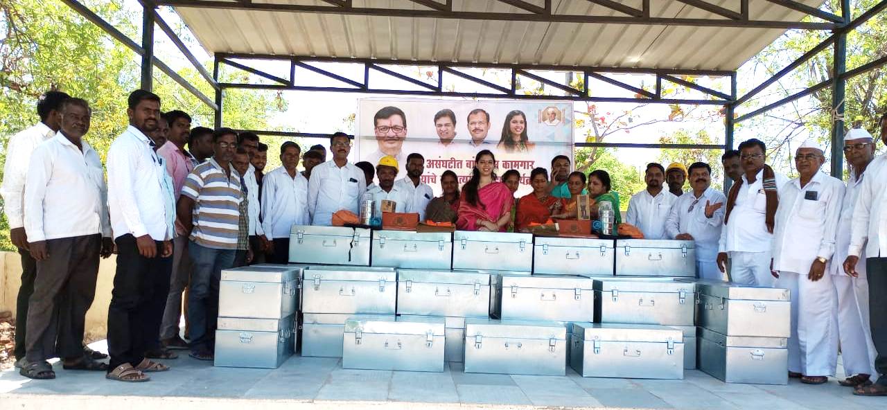 या साहित्य किट मध्ये लोखंडी पत्र्याची पेटी, जेवणाचा डबा, चटई, हॅन्ड ग्लोज, सेफ्टी गॉगल, हेल्मेट यांसह वीस प्रकारचे साहित्य देण्यात आले.
