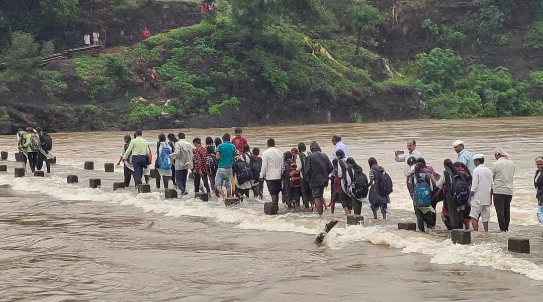 पाण्याखाली गेलेल्या बंधाऱ्यावरून शाळेसाठी जीव मुठीत धरून करावा लागतो प्रवास !