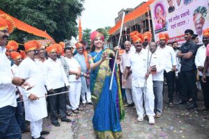 संगमनेर शहराच्या मानाच्या सोमेश्वर रंगार गल्ली श्री गणेशाची पूजा, आरती करून विसर्जन मिरवणुकीला प्रारंभ करण्यात आला.