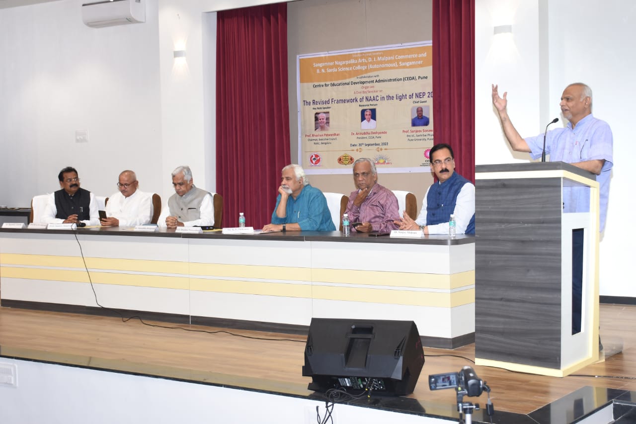 नवीन राष्ट्रीय शैक्षणिक धोरणाची अंमलबजावणी (NEP 2020) करत असताना, निश्चितच आनंद होत आहे. देशातील विद्यापीठे, शैक्षणिक संस्था, महाविद्यालय यांचे मूल्यांकन करणाऱ्या राष्ट्रीय मूल्यांकन आणि मान्यता परिषदेच्या मूल्यांकन प्रक्रियेत मूलभूत बदल होणार असून, भावी काळात मूल्यांकन हे संख्येवर नाही तर गुणवत्तेच्या आधारावर होणार आहे. असे मत बेंगलोर येथील राष्ट्रीय मूल्यांकन आणि मान्यता परिषदेच्या कार्यकारी समितीचे अध्यक्ष डॉ.भूषण पटवर्धन यांनी शिक्षण प्रसारक संस्थेच्या संगमनेर महाविद्यालयातील अंतर्गत गुणवत्ता सुधार योजना सेलच्या विद्यमाने ‘ नवीन राष्ट्रीय शैक्षणिक धोरण २०२० व नॅक मूल्यांकनांची पुनर्बांधणी ‘ या विषयावर आयोजित एक दिवशीय कार्यशाळेच्या उद्घाटनपर बीज भाषणात बोलताना व्यक्त केले.