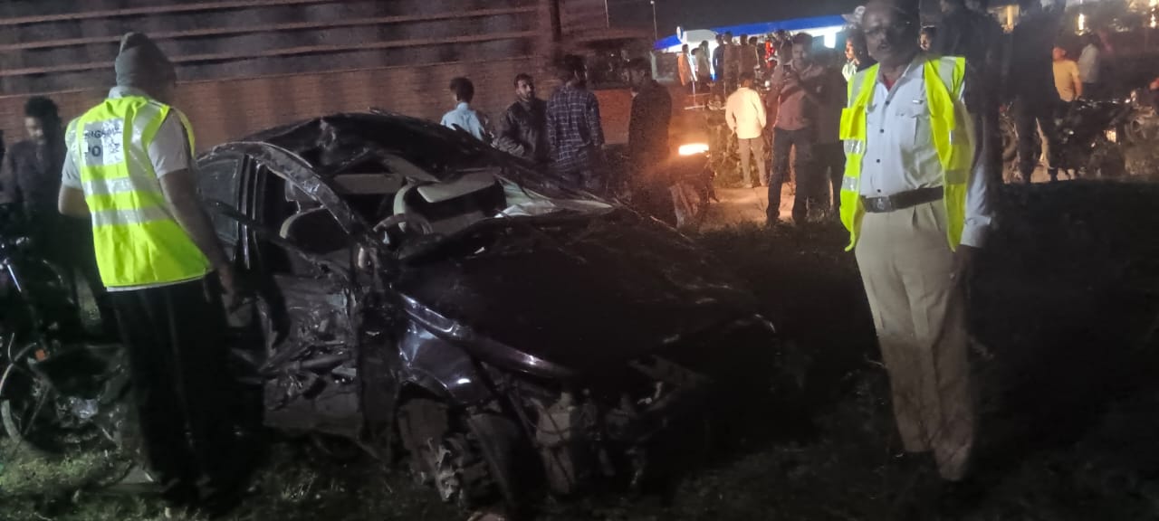 दुचाकीला मागून धडक देऊन कार वरचा ताबा सुटला ; भीषण अपघातात २ ठार ३ जखमी