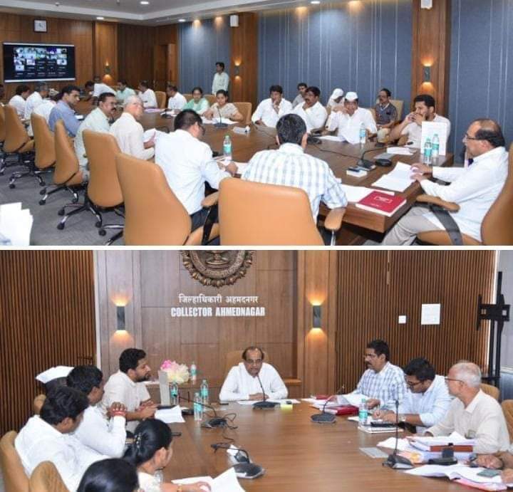 अतिवृष्टीने जिल्ह्यातील शेतकऱ्यांचे झालेले नुकसान आणि पंचनाम्याबाबतची आढावा बैठक महसूलमंत्र्यांच्या अध्यक्षतेखाली आज जिल्हाधिकारी कार्यालयात आयोजित करण्यात आली होती. व्हिडिओ कॉन्फरन्सद्वारे, जिल्हयातील उपविभागीय अधिकारी यांच्याशी संवाद साधून महसूल मंत्री राधाकृष्ण विखे पाटील यांनी, अतिवृष्टीमुळे झालेल्या नुकसानीचा महसूल मंडळनिहाय आढावा घेतला. त्यावेळी ते बोलत होते. बैठकीला खासदार डॉ. सुजय विखे पाटील, माजी मंत्री शिवाजीराव कर्डिले, जिल्हाधिकारी डॉ.राजेंद्र भोसले, जिल्हा परिषद मुख्याधिकारी आशिष येरेकर, नगर उपविभागीय अधिकारी श्रीनिवास अर्जुन, जिल्हा अधीक्षक कृषी अधिकारी शिवाजी जगताप उपस्थित होते.