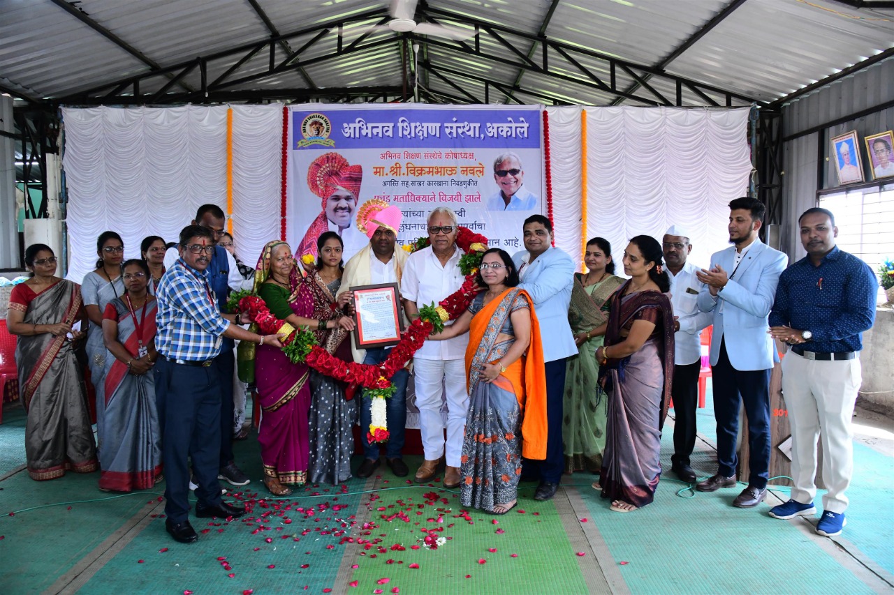 अभिनव शिक्षण संस्थेमध्ये त्यांच्या या यशाबद्दल सत्कार सोहळा आयोजित करण्यात आला होता. कार्यक्रमाच्या अध्यक्षस्थानी काँग्रेसचे ज्येष्ठ नेते व अभिनव शिक्षण संस्थेचे संस्थापक मधुकर नवले हे होते. कार्यक्रमाचे प्रास्ताविक एमबीए महाविद्यालयाचे विभागप्रमुख डॉ. अनिल बेंद्रे यांनी केले. अभिनव शिक्षण संस्थेच्या वतीने विक्रम नवले यांचा वडिल मधुकरराव नवले, आई सुमन नवले व पत्नी राधिका नवले यांच्यासमवेत सत्कार करण्यात आला.