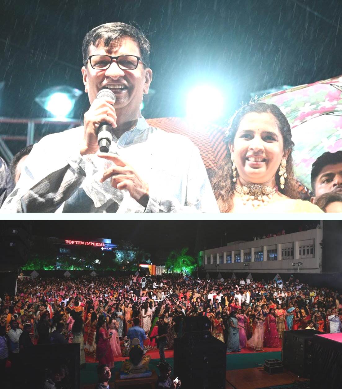 रिमझिम पावसात राधा खुडे ने गायलेले ‘पाहूणं जेवण करा, कोळीगीत व विविध लोकगीतांवर महिला भगिनींनी केलेले दांडिया नृत्यास भरभरून दाद मिळाली. यावेळी आलेल्या रिमझिम पावसात काँग्रेस विधिमंडळ पक्षनेते आमदार बाळासाहेब थोरात यांनी शुभेच्छा दिल्या.