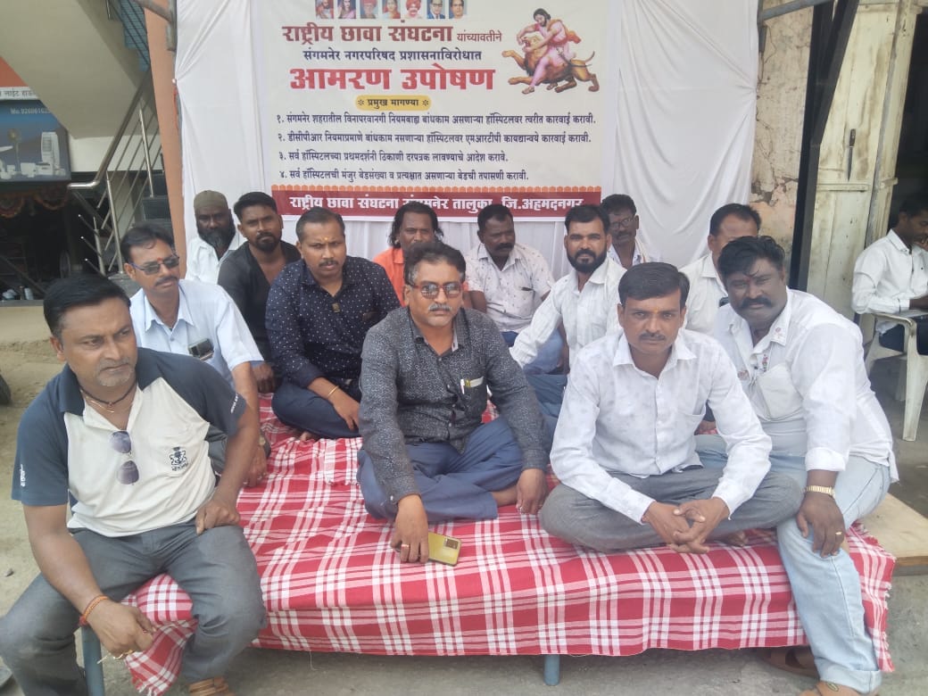 संगमनेर शहरातील बहुतांश रुग्णालयांमधून अव्वाच्या सव्वा बिले देऊन रुग्णांची लुटमार केली जाते. तसेच शहरात बांधण्यात आलेली अनेक रुग्णालये ही नियमबाह्य असून त्यांची बांधकामे बेकायदेशीर आहेत. परवान्यानुसार बांधकामे नसलेल्या रुग्णालयांवर कारवाई करावी अशी मागणी करत राष्ट्रीय छावा संघटनेने नगरपालिकेसमोर उपोषण सुरू केले आहे. तसेच संगमनेर शहरातल्या बऱ्याच रुग्णालयांच्या अवैध बाबी संघटनेने उघडकीस आणल्या आहेत.