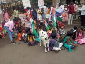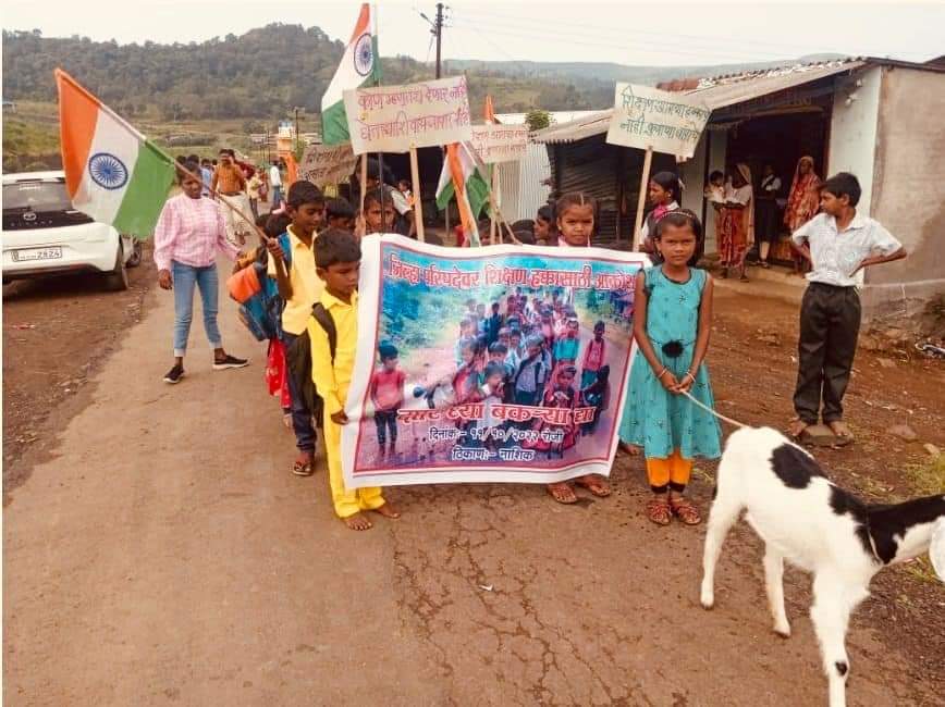 एक महिन्यापासून विद्यार्थ्यांचा शिक्षणाचा हक्क हिरावला गेल्याने सामाजिक कार्यकर्ते भगवान मधे हे पुढे सरसावले. त्यांच्या नेतृत्वाखाली मंगळवारी ४३ विद्यार्थी, काहींचे पालक यांनी दप्तर आणि बकऱ्यांसह जिल्हा परिषदेवर आक्रोश मोर्चा काढला. प्रवेशद्वारावर ठिय्या दिला.