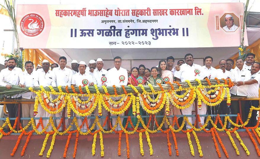 सहकार महर्षी भाऊसाहेब थोरात सहकारी साखर कारखान्याच्या ५६ व्या गळीत हंगामाच्या शुभारंभ प्रसंगी कार्यक्रमात ते बोलत होते. यावेळी अध्यक्षस्थानी कारखान्याचे चेअरमन बाबा ओहोळ हे होते. तर व्यासपीठावर आमदार डॉ. सुधीर तांबे, बाजीराव खेमनर, कांचनताई थोरात, दुर्गाताई तांबे, रणजीतसिंह देशमुख, ॲड. माधवराव कानवडे, लक्ष्मणराव कुटे, इंद्रजीत थोरात, डॉ. जयश्री थोरात, डॉ. हसमुख जैन, संपत डोंगरे, रामहरी कातोरे, नवनाथ अरगडे, व्हाईस चेअरमन संतोष हासे कार्यकारी संचालक जगन्नाथ घुगरकर आदी उपस्थित होते.
